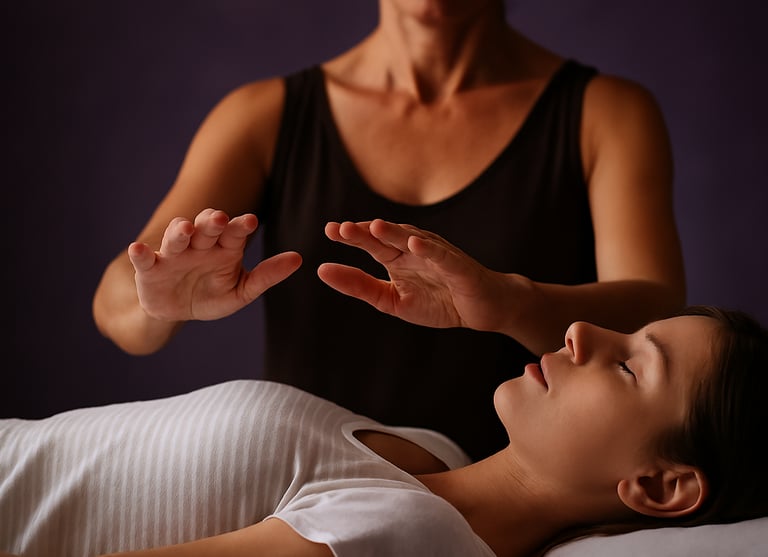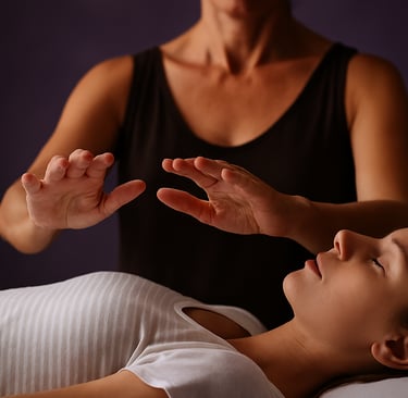 Imposition des mains pour libérer les blocages, apaiser les douleurs, revitaliser les centres énergétiques.